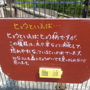 説明看板には「ヒョウ柄は木などの周りのものに同化しやすい」とありました