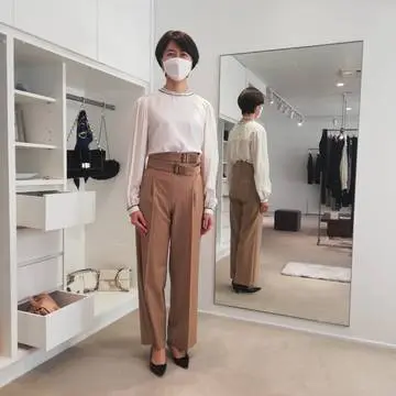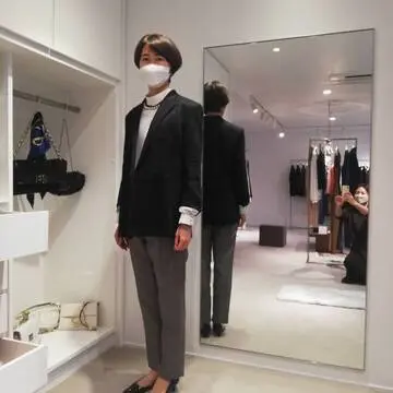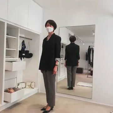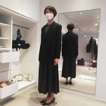 ちょっと黒は自分の中では苦手意識あったのですが、望月さんとお話し、鏡の中の自分を見たら、納得して自分にOK出せました。そして、パンツはサイズはジャストサイズ!