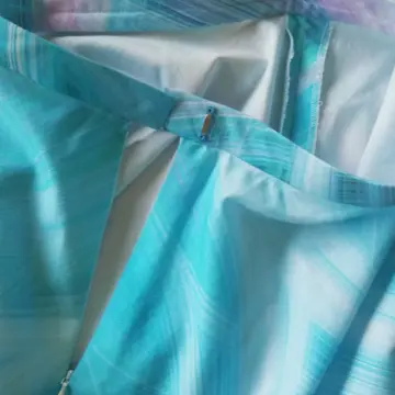 純粋にきれいだなと思って、水色・ピンク等入ったプリント生地、そしてザ・無難なブルーグレーの布を持参。