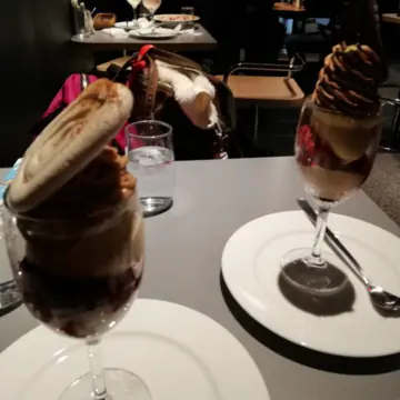 虎ノ門ヒルズ店限定のチョコパフェ(右奥)