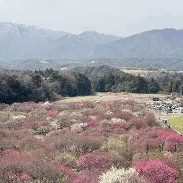 鈴鹿山脈を見渡す高台の「いなべ市農業公園」内にある東海エリア最大級の梅園。