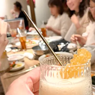 先日の、フラワーレッスンの後、韓国料理店でいただいた『生マッコリ』。