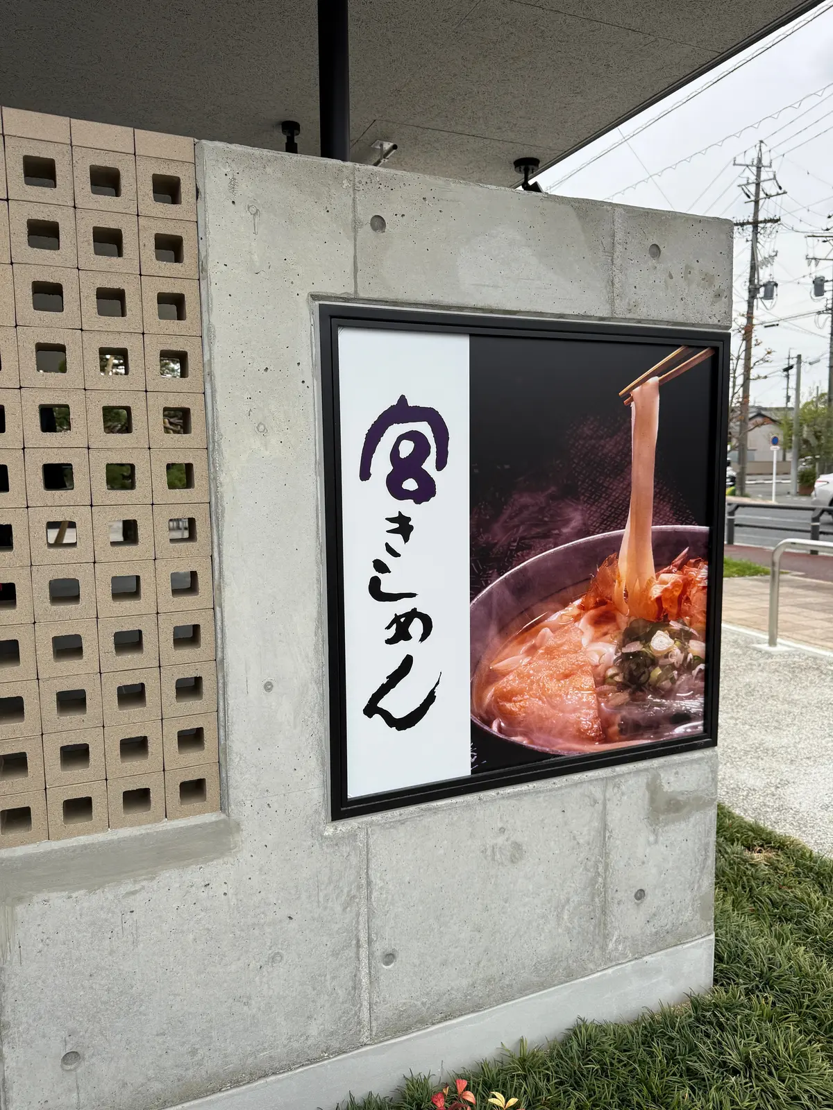神社の鳥居のすぐ隣にオープンした「宮きしめん 津島店」でランチをいただきました。