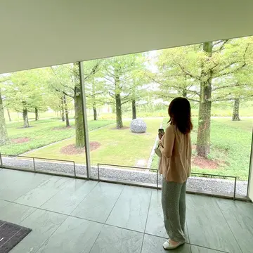 雨に濡れた緑と、美術館のモダンな建築の対比がとても美しくて、館内に入る前から、すでに心が整っていくような感覚に。