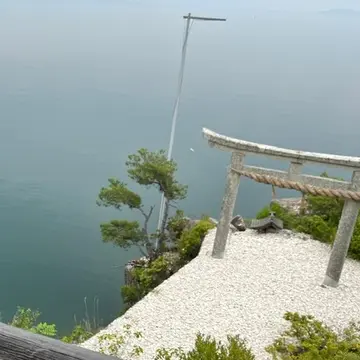 竹生島の絶景。竜神拝所でかわら投げで願掛けです。