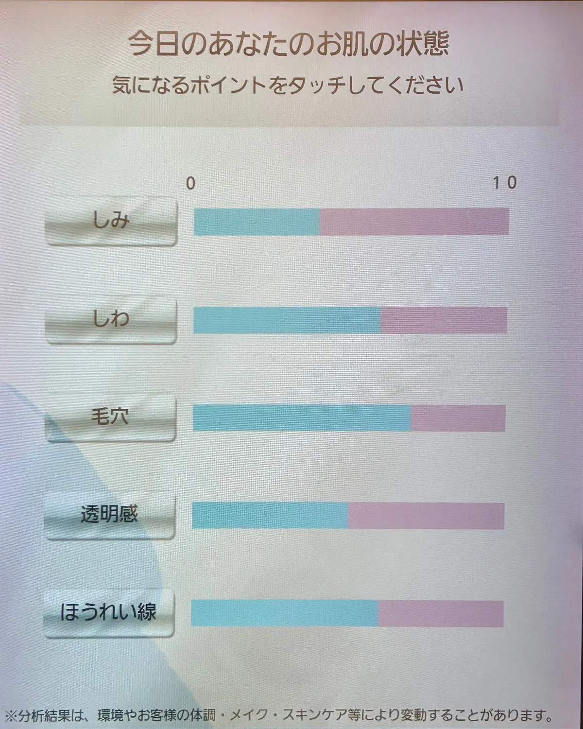 お化粧をしていても肌診断できて、お肌の状態の結果から、パナソニックの商品でどの様なケアをしたら良いかアドバイスしてくれます。