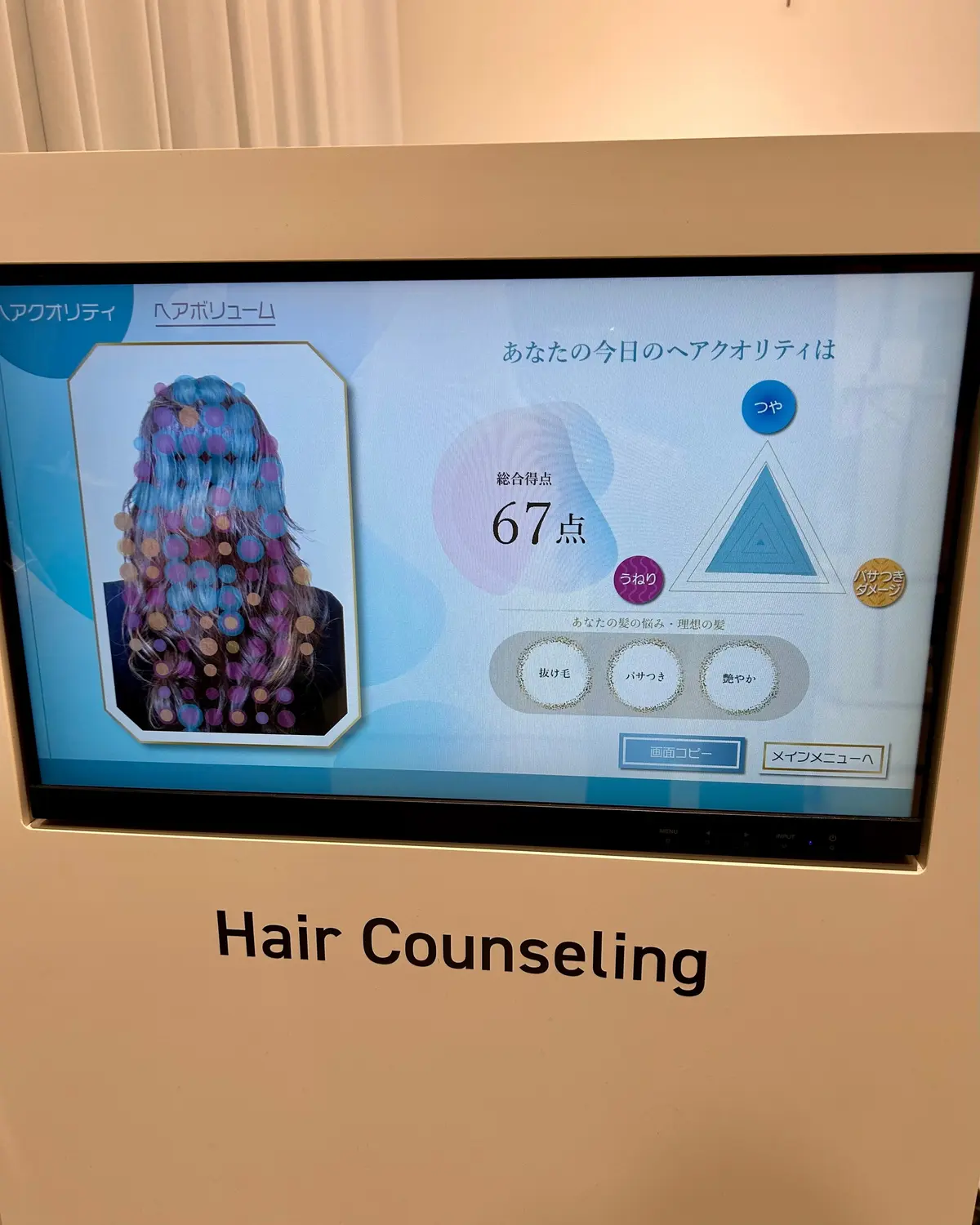 専用カメラと画像解析で髪のツヤ・うねり・ダメージなどを見える化する「髪キレイ」など、