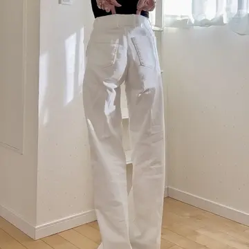 ホワイトコーデですがデニムシャツを挟むことで単調にならないです。