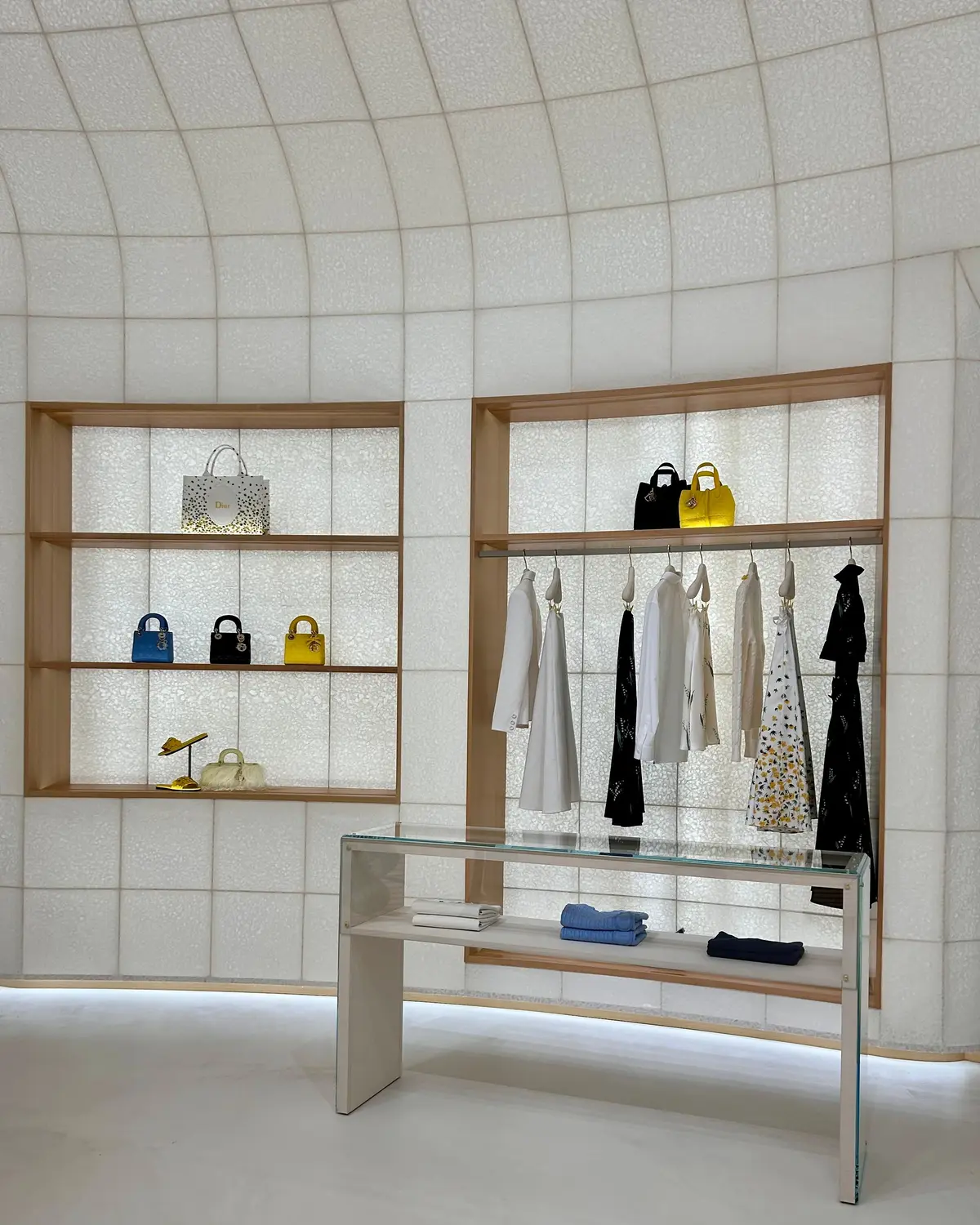 各部屋には、ジョナサン・アンダーソンによるメンズ・ウィメンズのコレクションが美しく展示され、まるでファッションとアートと自然が共鳴する生きた美術館のよう。