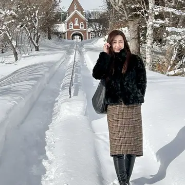 ツイードスカート、ロングブーツと完全防寒コーデでした♪