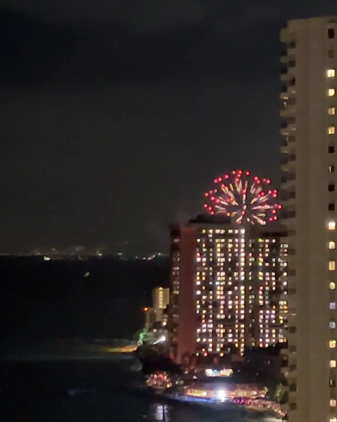事前にチェックしていたのですが、毎週金曜日の夜にヒルトンハワイワイキキビーチから上がる花火を