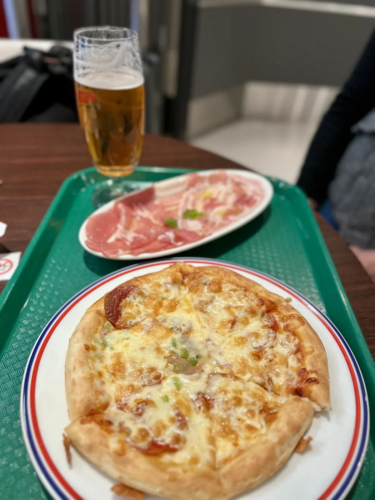 機内食がいつのタイミングで出るのかも分からずピザも食べちゃいました。