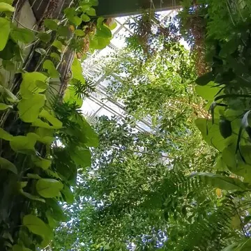 温室入ってすぐの天井を眺めると、不思議な空間が広がっていました。