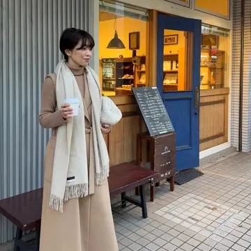 お仕事で動きやすいように、ZARAで購入しましたグレーのカーディガンとH&Mで見つけましたオフホワイトのカーゴパンツをセレクト。お気に入りのブラックのスニーカーを合わせて大人キレイめカジュアルにしました。