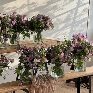 月一のお楽しみ、フレッシュフラワーレッスンに行ってきました。伊丹空港から車で10分の大阪池田市にあるこちらのサロン。この日東京からも生徒さんが来ていたのでとても賑やかなレッスンでした。来上がったブーケを並べるだけで可愛い♡