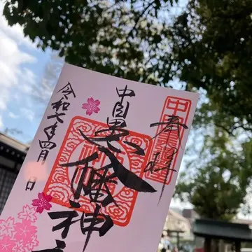 東京の三峯神社のひとつ、中目黒八幡神社へ。ピンク色の季節の御朱印をいただきました。