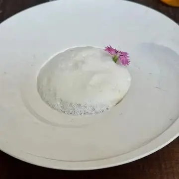 最初にいただいたのは、鮮やかなピンク色のイチゴのソルベ。一口食べると、そのフレッシュな味わいに感動!口の中に広がる甘酸っぱさが心地よく、まるで春の訪れを感じさせてくれるようでした。