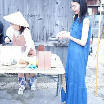 今回は私のお気に入りのワンピースを着て、半田運河沿いにある庭園で行われた茶会に出掛けました。ワンピースは、ノースリーブ。藍染のブルーが見た目にも爽やかな気分になります。生地もコットン100%でとても柔らかく、着心地が最高。スカーフもコットンのガーゼ素材でとてもサラサラしています。