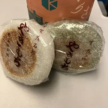 かわいいキューブ型のお茶のおみやげを購入。地域限定クラフトチューハイも見つけました。そして上賀茂名物、やきもち。(葵家)