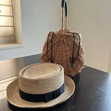 カゴバッグでワンピースに ぷちリゾート感を演出