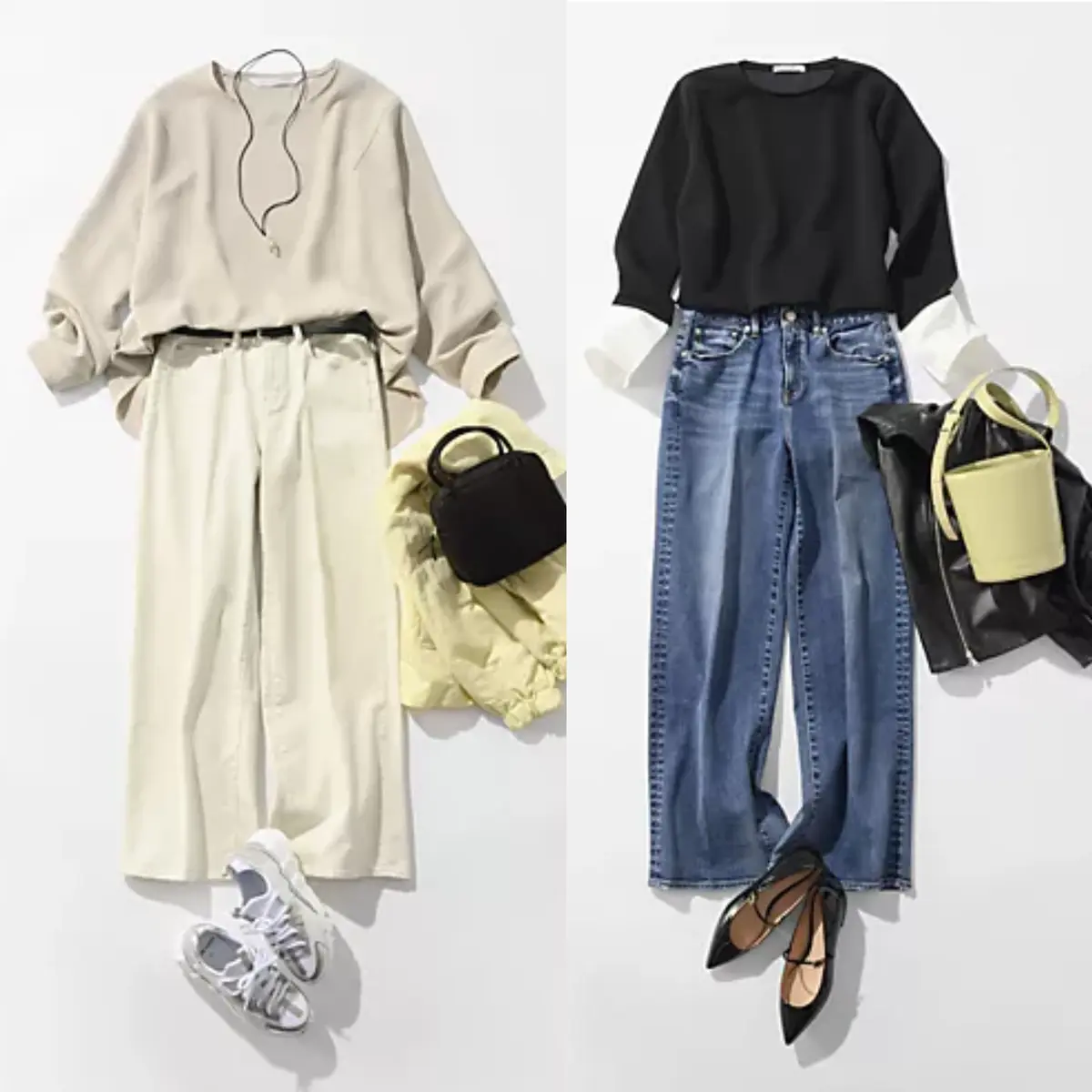 トップスによって表情を変えるブルージーンズ。デイリー使いによく活躍するブルージーンズをおしゃれ着に格上げしたい時、カジュアルときれいめのバランスを良く見ます。