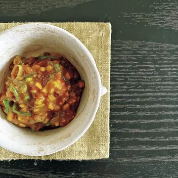 滋養のある韓国薬膳料理のレシピを紹介。タイのセラドン焼の皿を用いるなど器づかいにも注目。