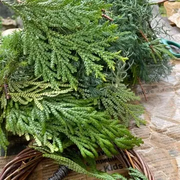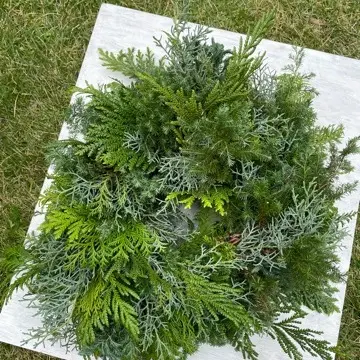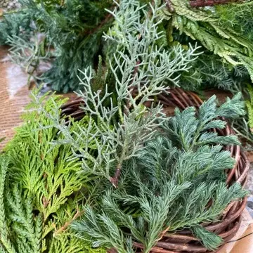 様々な種類の針葉樹とマグノリアの葉、木の実などを使ったずっしりと重く、贅沢なリースは材料を広げた瞬間からグリーンの良い香りがして、それはそれは幸せな時間でした。