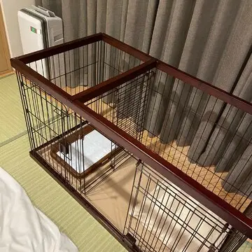 ペット連れ専用のお部屋。足洗い場、足拭きタオル、室内でのケージや小物も揃い、ペット連れにはありがたいホテルです。
