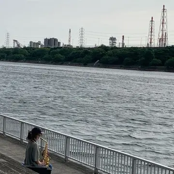 入江の川でサックス(^^♪