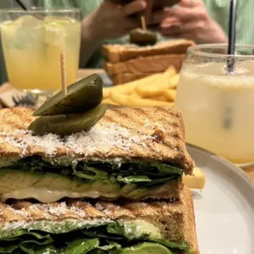 注文したアボカドとほうれん草のホットサンドがこの日のワンピースとリンクしていたり