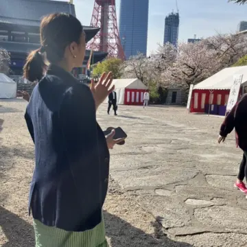 芝東照宮近くに咲いていた丸くて可愛い桜のピンクとワンピースのグリーンの相性がとても良かったり