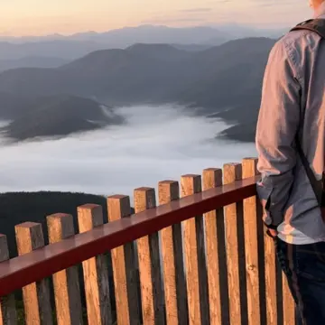 雲海テラス クラウドバー 高いので階段は一段一段慎重にあがります