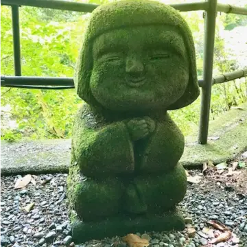 佛様となった故人が茶湯寺の石段で家族の来山を