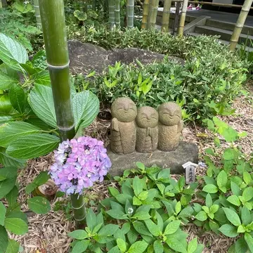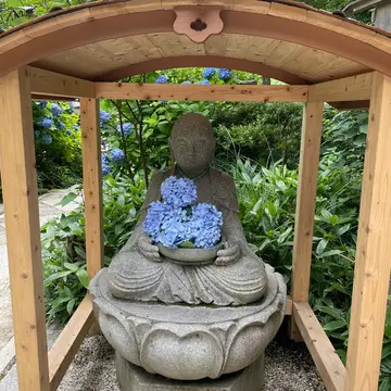 長谷寺では、にこやかな良縁地蔵の隣にアジサイが、、、