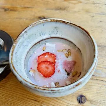 とちおとめのスープに浮かべた甘酒のムース