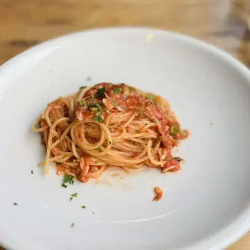 桜えびと蕗の薹のトマトソースパスタ