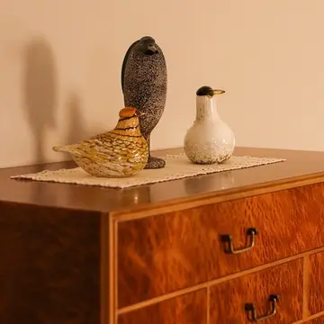 アルテックのFan legテーブルの上にイッタラのバードフクロウがちょこんと。