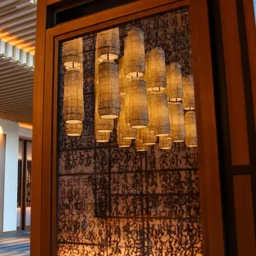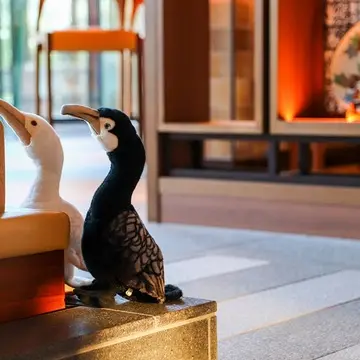 ところで、「ホテルインディゴ犬山有楽苑」は、旧名鉄犬山ホテルの再開発によって誕生したリブランドホテルだとご存じでしょうか? ユニークなのが、旧名鉄犬山ホテル時代の面影を現ホテルにも一部反映させていること。例えばこの印象的な鵜飼モチーフの壁も、以前からのものを再利用。新たな装いで人々を出迎えてくれています。私の夫が以前の旧名鉄犬山ホテルにも宿泊利用していたことから、懐かしい想い出話も教えて貰いました。