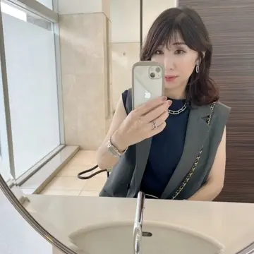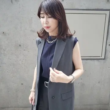 この日はUNIQLOのロングジレを主軸に組んだ、グレー、ネイビー、ブラックの色合わせのコーディネート。