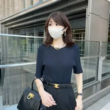 黒のワイドパンツは本当に万能で、オンオフ問わず穿くことができます。