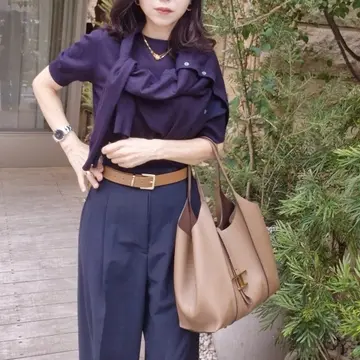 こちらも何年も前からよく着ているアンサンブルですが、コンサバ派の母に合わせ、ややきれいめなコーディネートに寄せてみました。