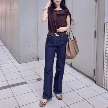 素材は薄手、色はこっくりブラウンカラーで暑さ対策しながら秋らしさも取り入れたいシーズンにぴったりです♪