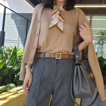 ちょっとだけおしゃれをしたい日は、首元にツイリーをあしらって。