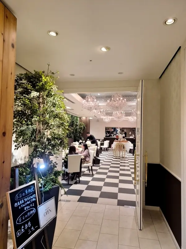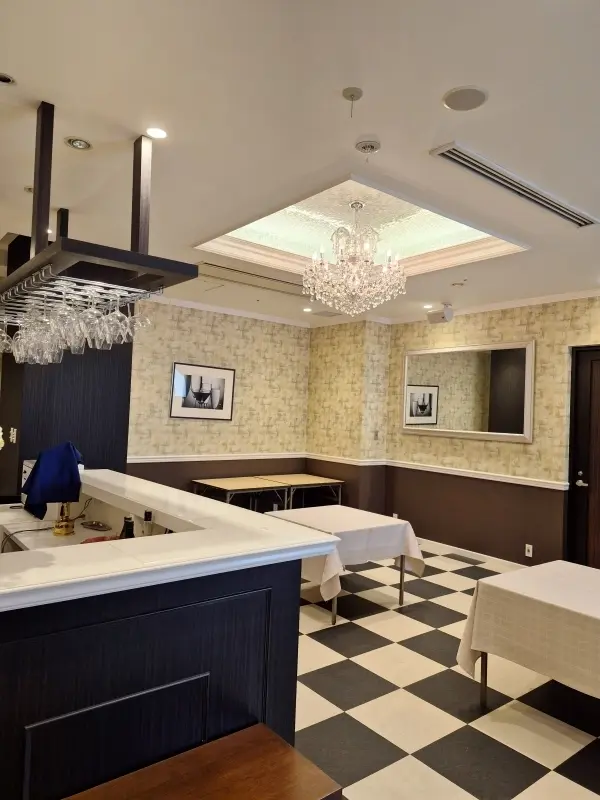ホワイトとブラックを基調としたモダンな店内に、煌めくシャンデリア。