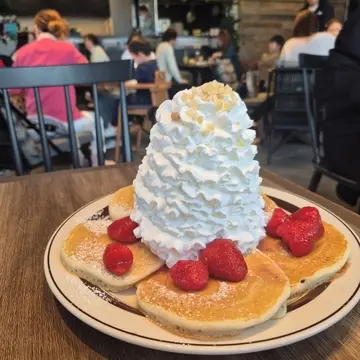 エッグベネディクトと、ストロベリーパンケーキは安定の美味しさ!