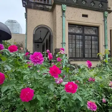 歴史と品格を感じさせる外観が、可憐な秋バラとマッチして素敵ですね。