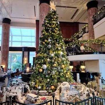 ホテルの正面入り口を入ると直ぐのロビーは、クリスマスらしい煌びやかなデコレーションが。