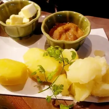 特に、ふかした北あかりにたっぷりと濃厚な北海道バターと、これもまた新鮮なイカの塩辛をトッピングして食べるのはついついお酒が進んでしまいました。