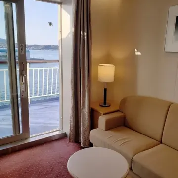 この船では、部屋にプライベートデッキがついたデラックスルームを選択。