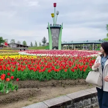 あいにく小雨が降っていたのですが、ちょうどチューリップフェア開催中で、どこを歩いてもどこを見ても見事な花畑!